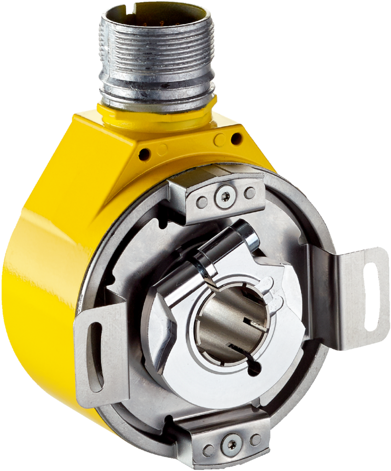 Wieloobrotowy enkoder bezpieczeństwa SICK, poziom SIL 3, PL e, rozdzielczość 18 bit x 12 bit, otwór przelotowy 15 mm, SSI/SinCos, programowalny, IP65, wtyk M23.