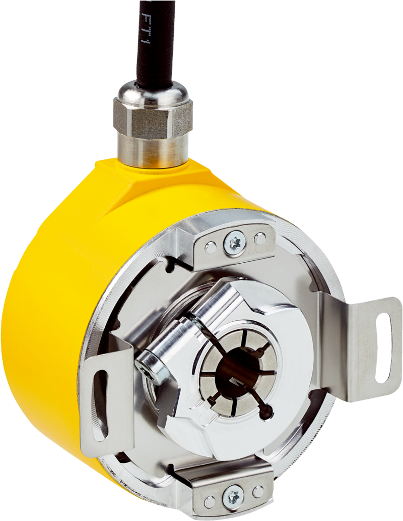 Jednoobrotowy enkoder bezpieczeństwa SICK, poziom SIL3/PL e, SSI+Sin/Cos, otwór przelotowy 5/8”, przewód 10m, IP65, stal nierdzewna z rowkiem wpustowym, 262144 kroki/obrót.
