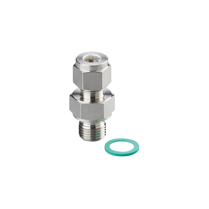Przyłącze procesowe firmy IFM, podłączenie czujnika fi 8 mm, przyłącze procesowe G 1/4, stal nierdzewna (1.4404 / 316L), uszczelka: FKM, wytrzymałość na ciśnienie 50 bar