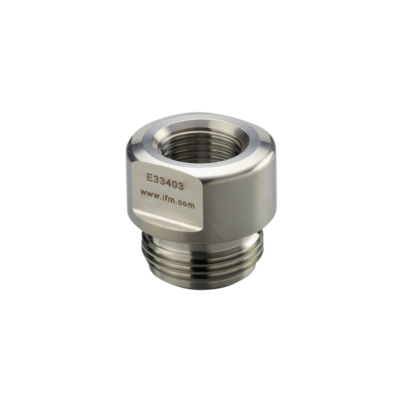 Adapter wkręcany firmy IFM, podłączenie czujnika G 1/2 stożek uszczelniający, przyłącze procesowe Aseptoflex, stal kwasoodporna (1.4435 / 316L), wytrzymałość na ciśnienie 50 bar, dopuszczenie EC1935/2004, FDA, FCM, 3-A