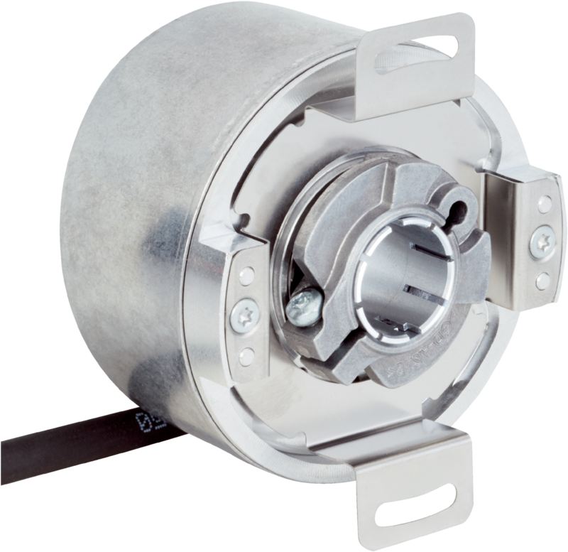 Wieloobrotowy enkoder bezpieczeństwa SICK, optyczny, interfejs HIPERFACE, 1024 okresy sinus/cosinus, przewód 1,5 m, otwór nieprzelotowy 14 mm, IP65, temp. –30...+85°C.