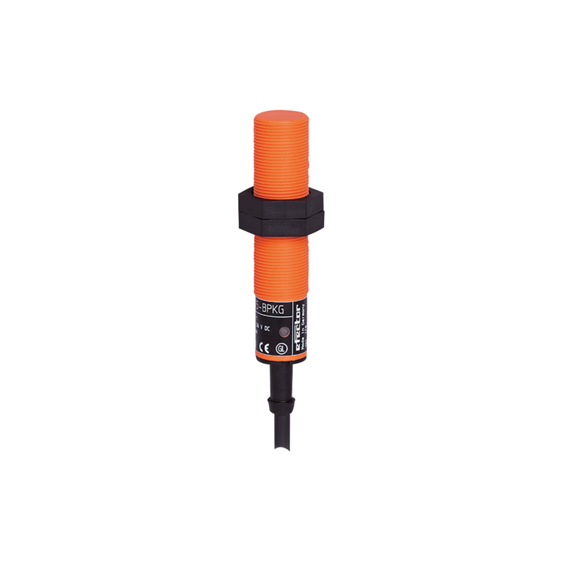 Czujnik indukcyjny IFM, średnica M18, sn=8 mm, czoło niezabudowane, NO, zasilanie 20-250 V AC/DC, kabel 10 m, 25 Hz, L=80 mm, korpus tworzywo