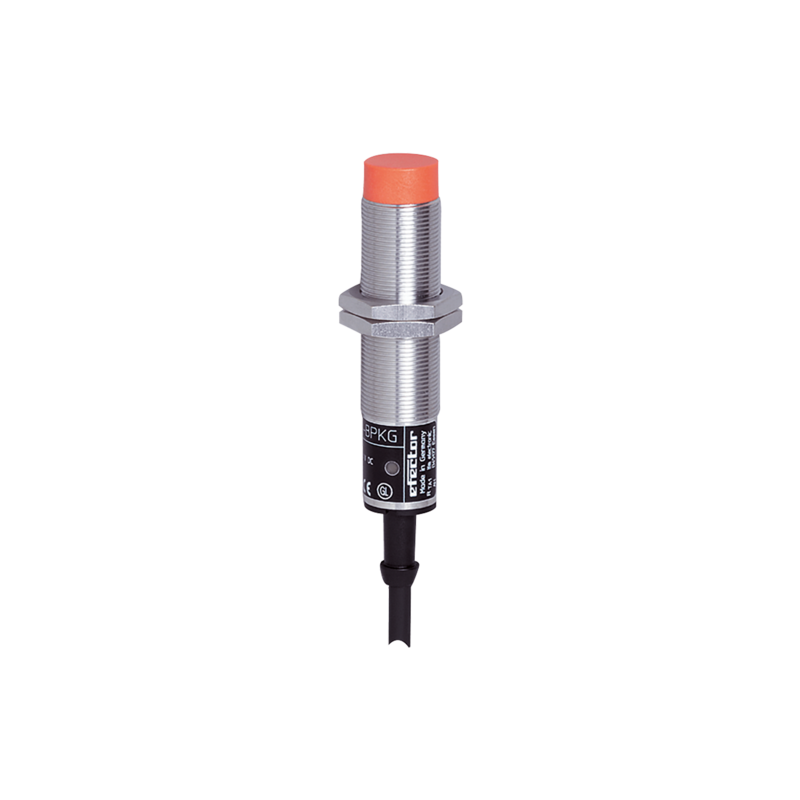 Czujnik indukcyjny IFM, średnica M18, sn=12 mm, czoło niezabudowane, NPN/NO, zasilanie 10-36 VDC, kabel 1 m ,100 Hz, L=80 mm
