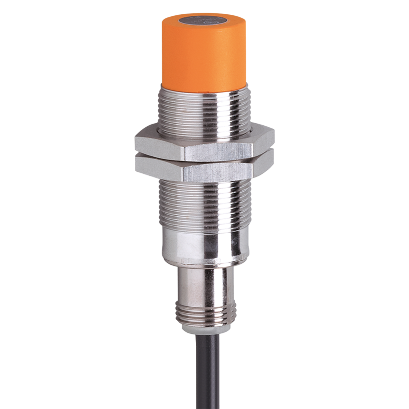 Czujnik indukcyjny IFM, średnica M18, sn=8 mm, czoło niezabudowane, PNP/NO, zasilanie 10-30 VDC, kabel 2 m, 300 Hz, L=61 mm