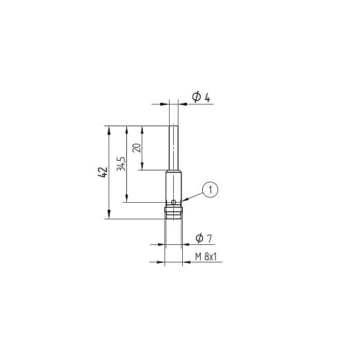 Czujnik indukcyjny XECRO, średnica fi 4 mm, sn=0,8 mm, czoło zabudowane, PNP/NO, zasilanie 10-30 VDC, kabel 300 mm z gniazdem M8, 2000Hz, L=25 mm