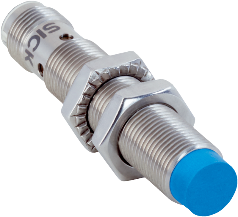 Indukcyjny czujnik zbliżeniowy SICK, standardowa obudowa, zasięg 8 mm, NPN, styk NO, brak montażu w jednej płaszczyźnie, wtyk M12, stal nierdzewna, IP68/IP69K.