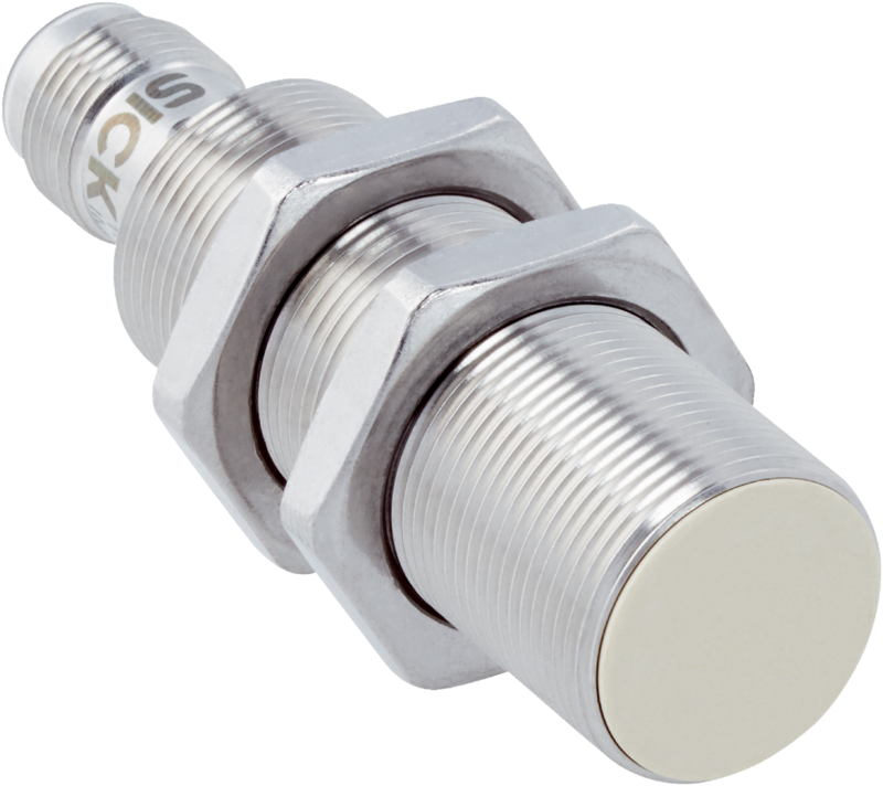 Indukcyjny czujnik zbliżeniowy SICK do trudnych warunków, zasięg 8 mm, quasi-flush, M18, PNP komplementarne, DC 4-przewodowy, IO-Link, stal nierdzewna, IP68/IP69K.