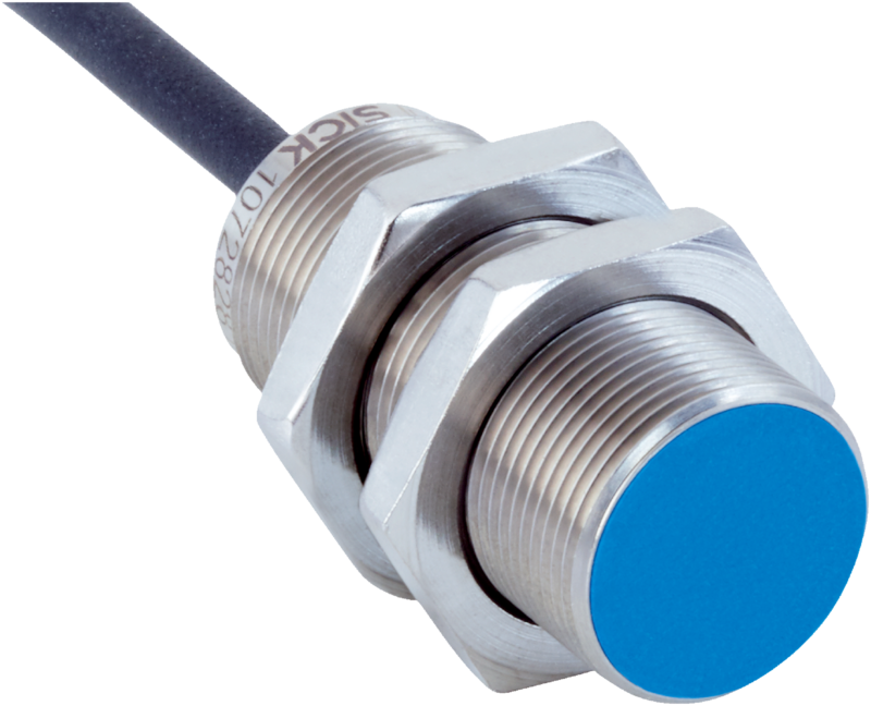 Indukcyjny czujnik zbliżeniowy SICK, korpus krótki, zasięg 8 mm, PNP, styk NC, przewód 2 m, montaż w metalu, odporność na chłodziwa, IP67/IP68/IP69K.