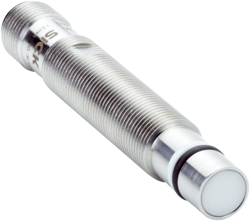Indukcyjny czujnik zbliżeniowy SICK do hydrauliki, zasięg 1,5 mm, PNP, styk NC, wtyk M12 4-pinowy, odporność na ciśnienie do 500 bar, stal nierdzewna, IP68, długość 78 mm.