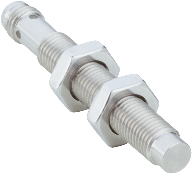 Indukcyjne czujniki zbliżeniowe, IMI, IM08-06NPS-VT1, Zastosowania specjalne: Obszar stosowania płynów chłodzących i smarów, trudne warunki pracy, Cechy szczególne: Powierzchnia aktywna ze stali nierdzewnej V2A, Odporność na środki chłodzące i smarujące, Trzykrotnie większy zasięg, Wizualny wskaźnik ustawienia, IO-Link