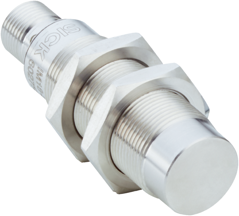 Indukcyjne czujniki zbliżeniowe, IMI, IM18-20NPS-VC1, Zastosowania specjalne: Obszar stosowania płynów chłodzących i smarów, trudne warunki pracy, Cechy szczególne: Powierzchnia aktywna ze stali nierdzewnej V2A, Odporność na środki chłodzące i smarujące, Trzykrotnie większy zasięg, Wizualny wskaźnik ustawienia, IO-Link