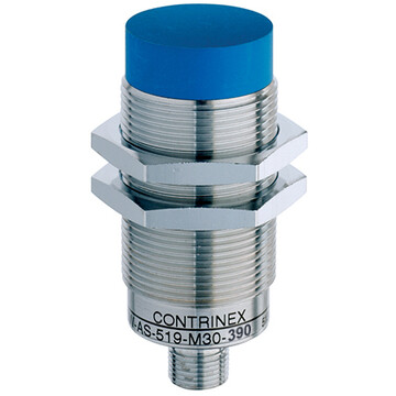 Czujnik indukcyjny firmy Contrinex, średnica M30, sn= 0…40 mm, czoło niezabudowane, analogowe 4-20 mA / 0-10 V, 10-30VDC, konektor M12, L= 48 mm
