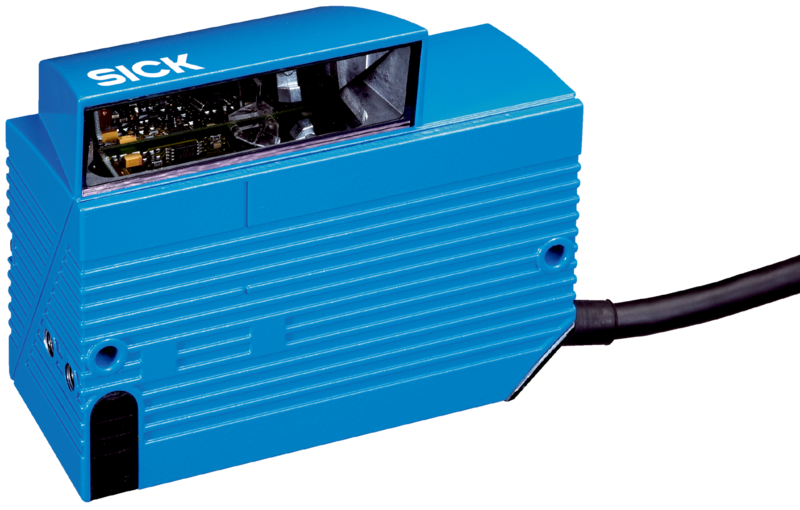 Stacjonarny czytnik kodów kreskowych SICK, skaner rastrowy, rozdzielczość 0,25–0,5 mm, zasięg 74–412 mm, szybka szklana, IP65, interfejsy PROFINET/EtherCAT/CAN, światło czerwone 655 nm.