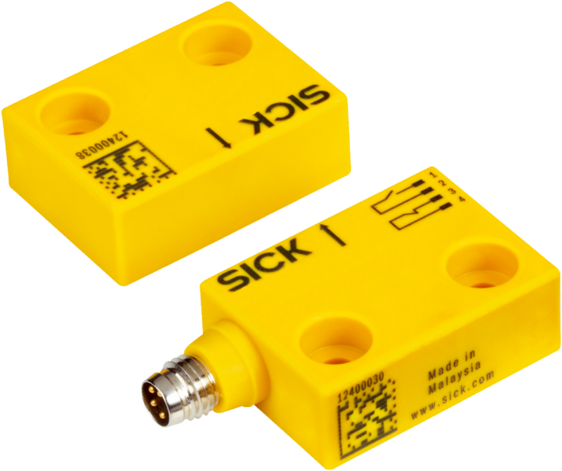 Magnetyczny wyłącznik bezpieczeństwa SICK, czujnik z aktuatorem, wtyk M8, 1 styk NO, 1 NC, kodowanie niskie, IP67, przekrój przewodu 0,25 mm2, temperatura -30°C do +60°C.