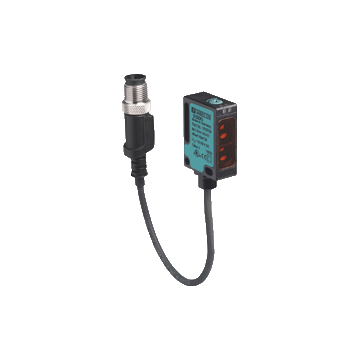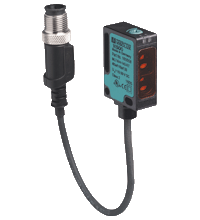 | Czujnik odbiciowy z tłumieniem tła, regulowany zasięg detekcji 350 mm, światło podczerwone, włączone światło / ciemność, dwa wyjścia PNP, stały kabel z wtyczką M12 | ||