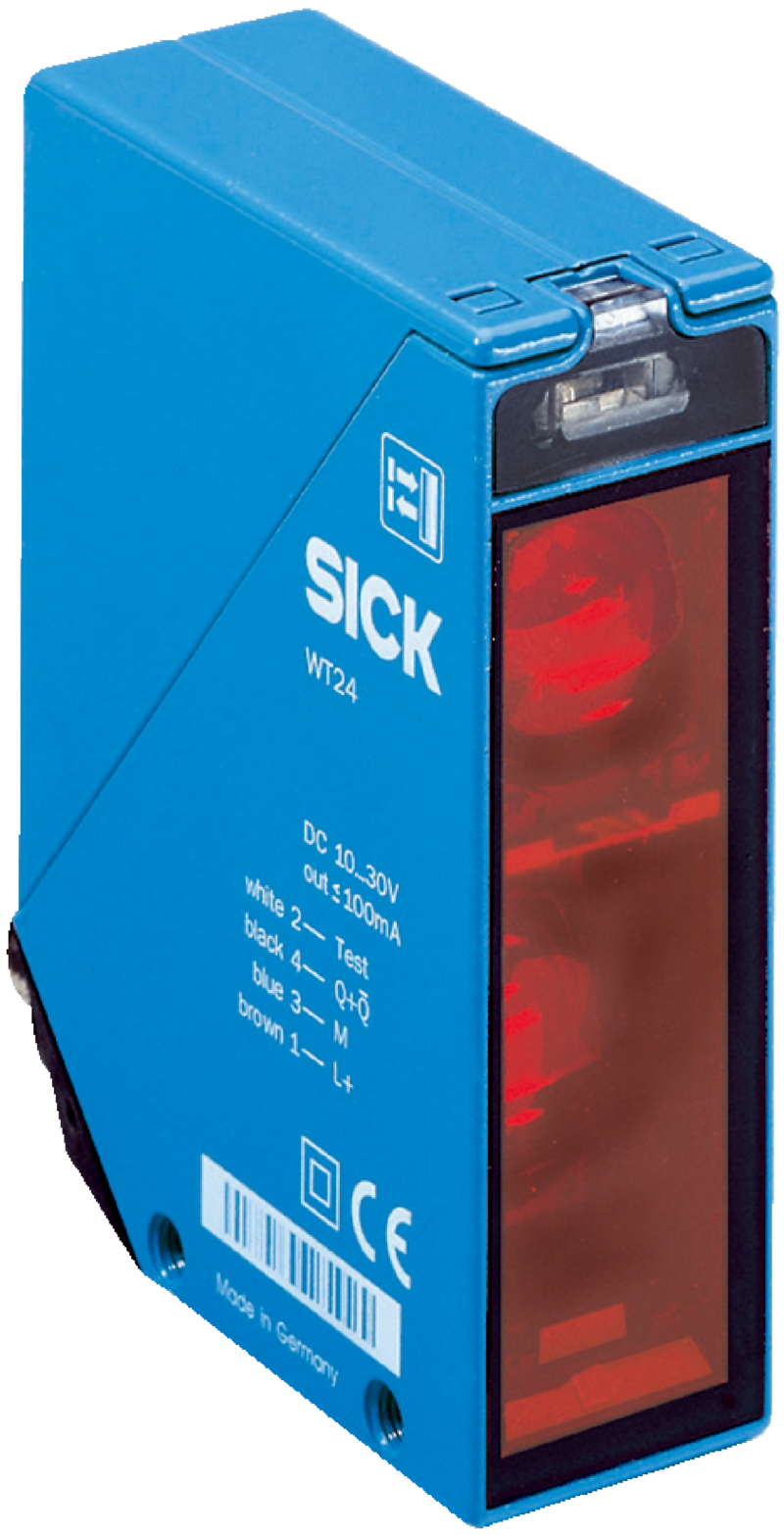 Fotoprzekaźniki, W24, WT24-2B420S22, Maks. zasięg wykrywania: 300 mm ... 900 mm, Zasada działania: Fotoprzekaźnik odbiciowy, Szczegóły zasady działania: Tłumienie tła, Wyjście przełączające: NPN, PNP, Tryb przełączania: Załączany na jasno/ciemno, Typ przyłącza: Wtyk M12, 4-pinowy, Rodzaj ustawiania: Potencjometr
