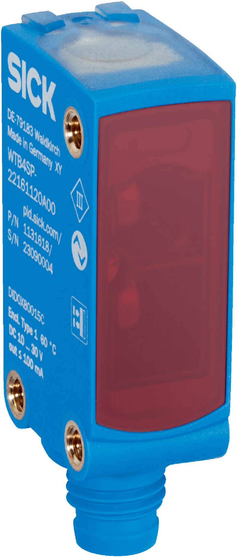 Fotoprzekaźniki, W4, WTB4SP-22161100A00, Zasięg min./maks.: 4 mm / 100 mm, Zasada działania: Fotoprzekaźnik odbiciowy, Szczegóły zasady działania: Tłumienie tła, Wyjście przełączające: Push-Pull: PNP/NPN, Tryb przełączania: Załączany na jasno/ciemno, Typ przyłącza: Wtyk M8, 4-biegunowy, Nadajnik światła: Nadajnik PinPoint, Rodzaj światła: Widzialne światło czerwone, Materiał obudowy: VISTAL®, Rodzaj ustawiania: IO-Link, Smart Sensor: Enhanced Sensing, Efficient Communication, Diagnostyka, Smart Task, Oznaczenie Smart Task: Logika podstawowa, Cechy szczególne: Stały zasięg 100 mm, Korpus: Prostopadłościenny