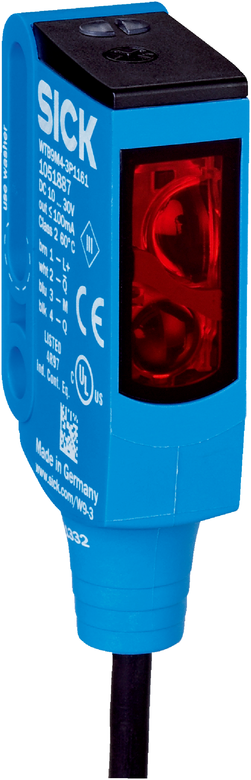 Fotoprzekaźniki, W9, WTB9M4-3P3461S19, Zasada działania: Fotoprzekaźnik odbiciowy, Szczegóły zasady działania: Tłumienie tła, Wyjście przełączające: PNP, Tryb przełączania: Załączany na jasno/ciemno, Typ przyłącza: Przewód z 4-biegunowym wtykiem M12, 120 mm, Nadajnik światła: Nadajnik PinPoint, Rodzaj ustawiania: Potencjometr, Interfejs komunikacyjny: -