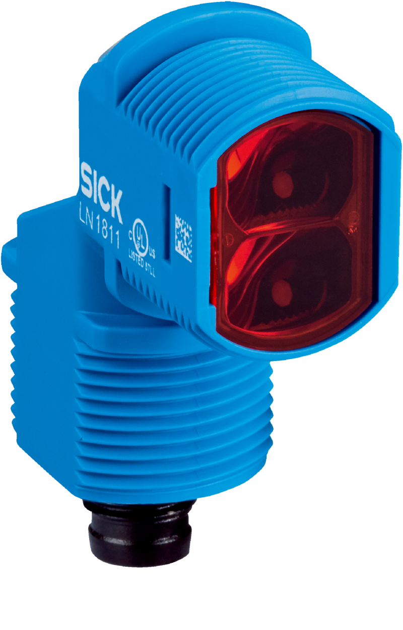 Fotoprzekaźnik odbiciowy SICK, tłumienie tła, zasięg 100 mm, czerwony PinPoint, NPN, montaż M18, M8 4-pin, IP67.