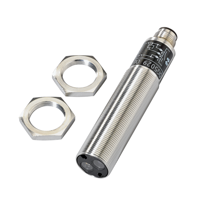 Czujnik optyczny odbiciowy firmy IFM, obudowa cylindryczna M18, zasięg = 100 mm, PNP/ NO, zasilanie 10 - 55 VDC, konektor M12, L=90 mm