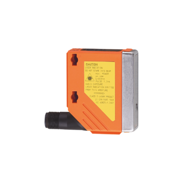 Dalmierz laserowy firmy IFM, obudowa kostkowa 56 x 18 x 46 mm, PNP/ NO + NC, Io-Link, zakres pomiarowy 0,03 ... 2 m, laser klasa 2, IP67, podłączenie konektor M12, wyświetlacz cyfrowy
