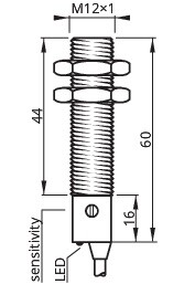 Czujnik pojemnościowy XECRO, średnica M12, sn=6 mm, czoło zabudowane, PNP/NO, zasilanie 10-30 VDC, kabel 2 m, 100Hz, L=60 mm, regulowany, korpus tworzywo