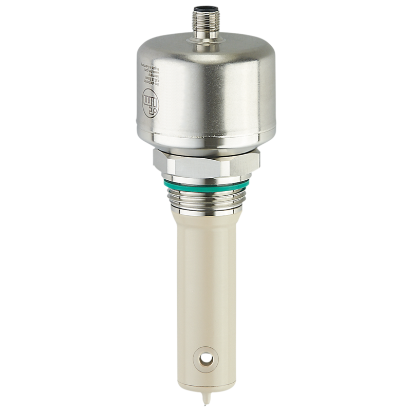 Czujnik indukcyjny firmy IFM, metoda indukcyjna, przyłącze procesowe G 1 gwint zewnętrzny Aseptoflex Vario, zakres pomiarowy 100...1000000, wyjście 4...20 mA + IO-Link, materiał części mokrych PEEK