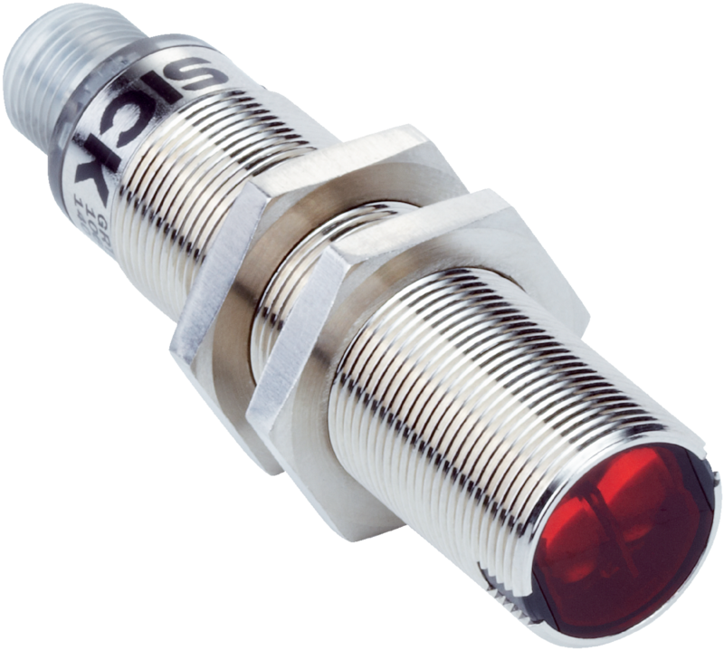 Fotoprzekaźniki, GR18, GRL18-P2432, Zasada działania: Fotoprzekaźnik refleksyjny, Szczegóły zasady działania: Z odstępem minimalnym od odbłyśnika (układ dwusoczewkowy), Wyjście przełączające: PNP, Tryb przełączania: Załączany na jasno/ciemno, Typ przyłącza: Wtyk M12, 4-pinowy, Nadajnik światła: Nadajnik PinPoint, Rodzaj ustawiania: Potencjometr, Interfejs komunikacyjny: -, W zakresie dostawy: Nakrętka mocująca (2 x)