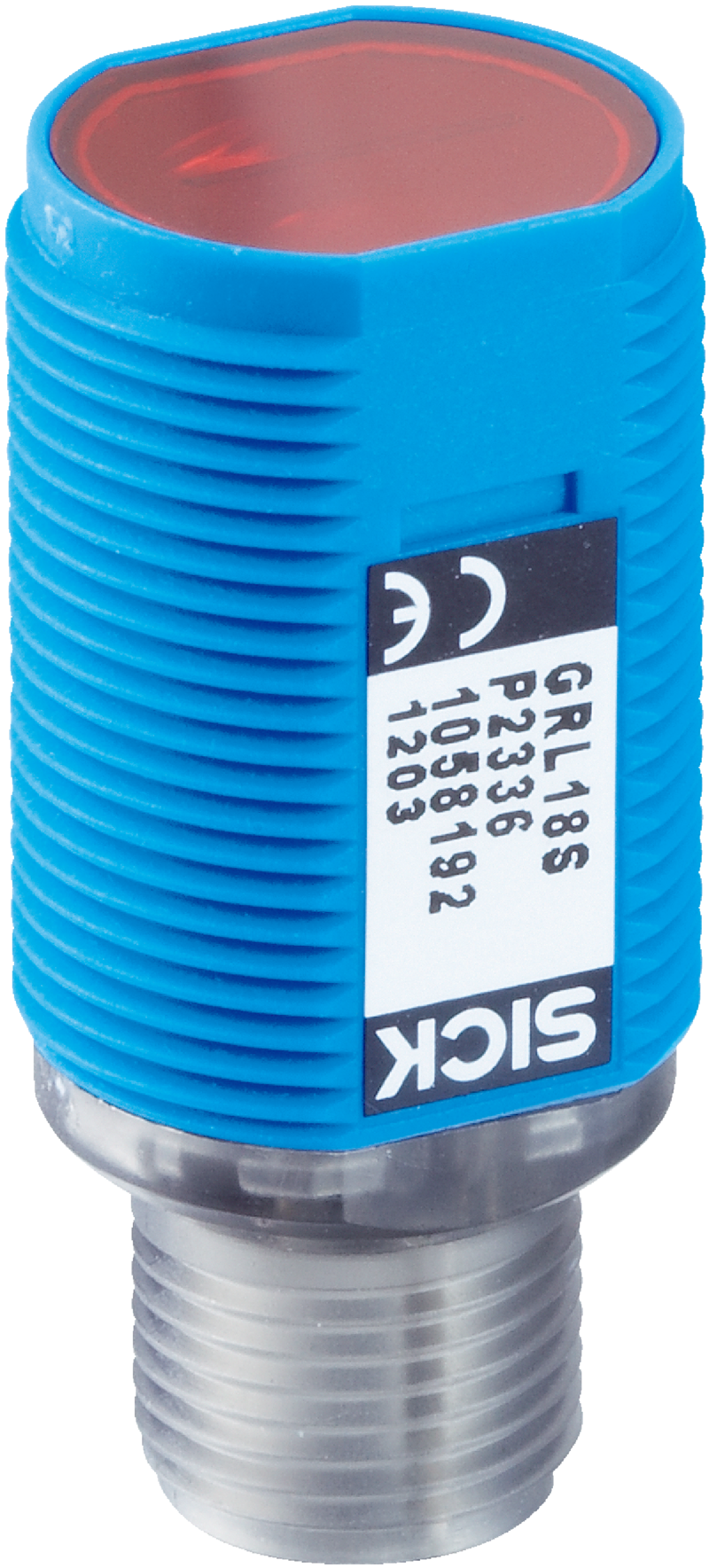 Fotoprzekaźniki, GR18, GRL18S-P2336, Zasada działania: Fotoprzekaźnik refleksyjny, Szczegóły zasady działania: Z odstępem minimalnym od odbłyśnika (układ dwusoczewkowy), Wyjście przełączające: PNP, Tryb przełączania: Załączany przez światło, Typ przyłącza: Wtyk M12, 3-pinowy, Nadajnik światła: Nadajnik PinPoint, Rodzaj ustawiania: Brak, Interfejs komunikacyjny: -, W zakresie dostawy: Nakrętka mocująca (2 x)