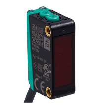 Czujnik refleksyjny firmy Pepperl+Fuchs, zakres 0 ... 5 m, światło czerwone, zasilanie 10 ... 30 V DC, przewód 2 m, 1 wyjście PNP, . Ustawienie domyślne to: ciemno-włącz1000 Hz, -30 ... 60 ° C, IP67