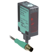 | Czujnik refleksyjny do standardowych zastosowań, miniaturowa konstrukcja, wykrywanie wyraźnych obiektów, przednia powierzchnia optyczna, zasięg wykrywania 7,6 m, czerwone światło, włączone światło, 2 wyjścia push-pull, stały kabel z wtyczką M12 | ||