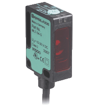 Czujnik refleksyjny firmy Pepperl+Fuchs, zakres 0 ... 3,5 m w trybie TEACH 0 ... 5,7 m w położeniu przełącznika „N”, światło czerwone, zasilanie 10 ... 30 V DC, przewód 2 m, 1 wyjście PNP, ciemno-włącz, 1 kHz, -20 ... 60 ° C, IP67 / IP69K