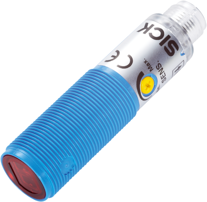 Fotoprzekaźnik odbiciowy SICK, energetyczny, wyjście PNP, wtyk M12 4-pinowy, zakres detekcji 1–1100 mm, kąt rozproszenia 1,2°, IP67, obudowa PBT/PC, plamka 30 mm/800 mm.