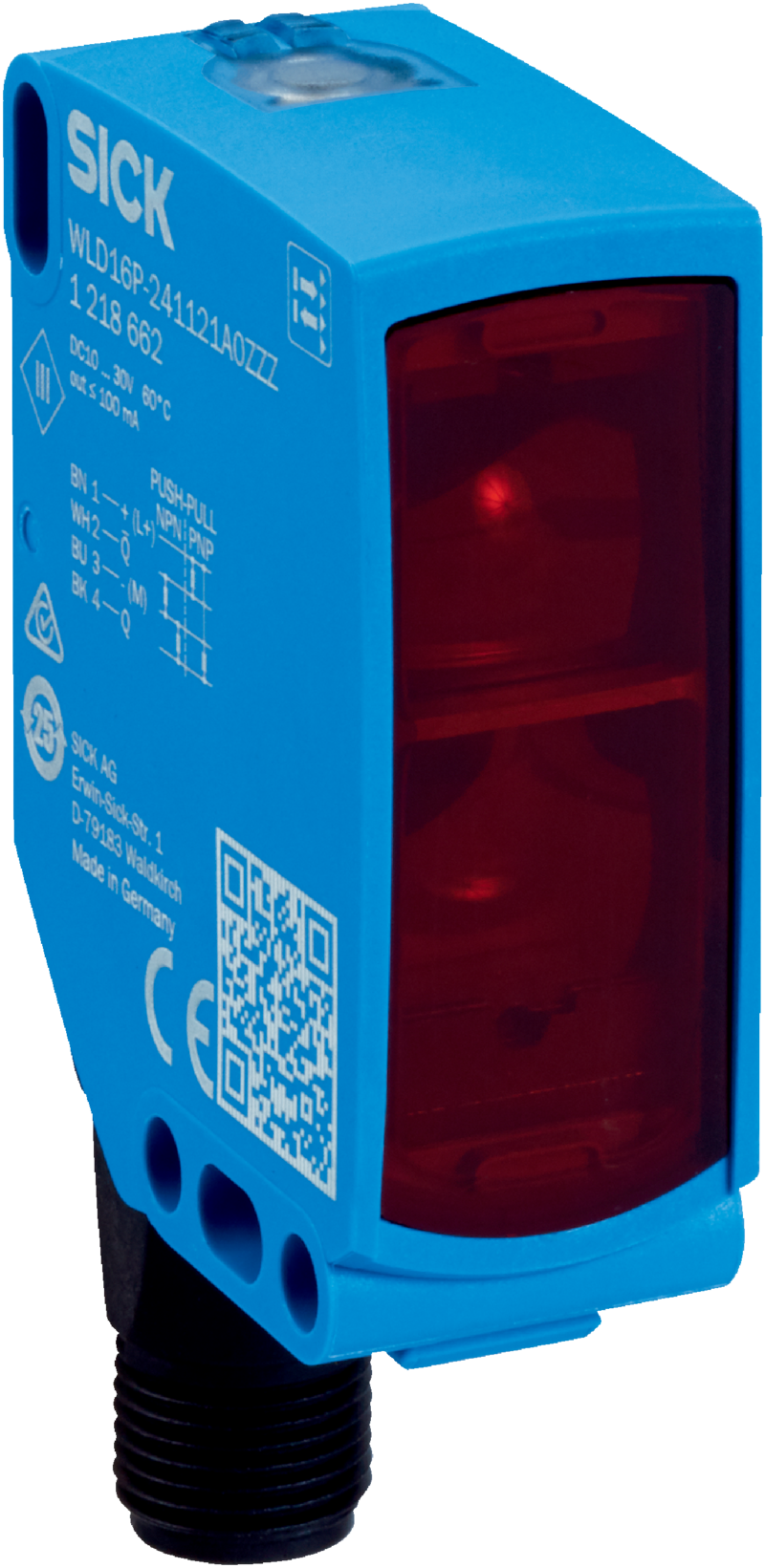 Fotoprzekaźniki, W16, WLD16P-241121A0ZZZ, Zasięg min./maks.: 0,25 m / 14 m, Zasada działania: Fotoprzekaźnik refleksyjny, Szczegóły zasady działania: Z odstępem minimalnym od odbłyśnika (układ dwusoczewkowy), Wyjście przełączające: Push-Pull: PNP/NPN, Tryb przełączania: Załączany na jasno/ciemno, Typ przyłącza: Wtyk M12, 4-pinowy, Nadajnik światła: Nadajnik PinPoint, Rodzaj światła: Widzialne światło czerwone, Materiał obudowy: VISTAL®, Rodzaj ustawiania: Brak, Korpus: Prostopadłościenny