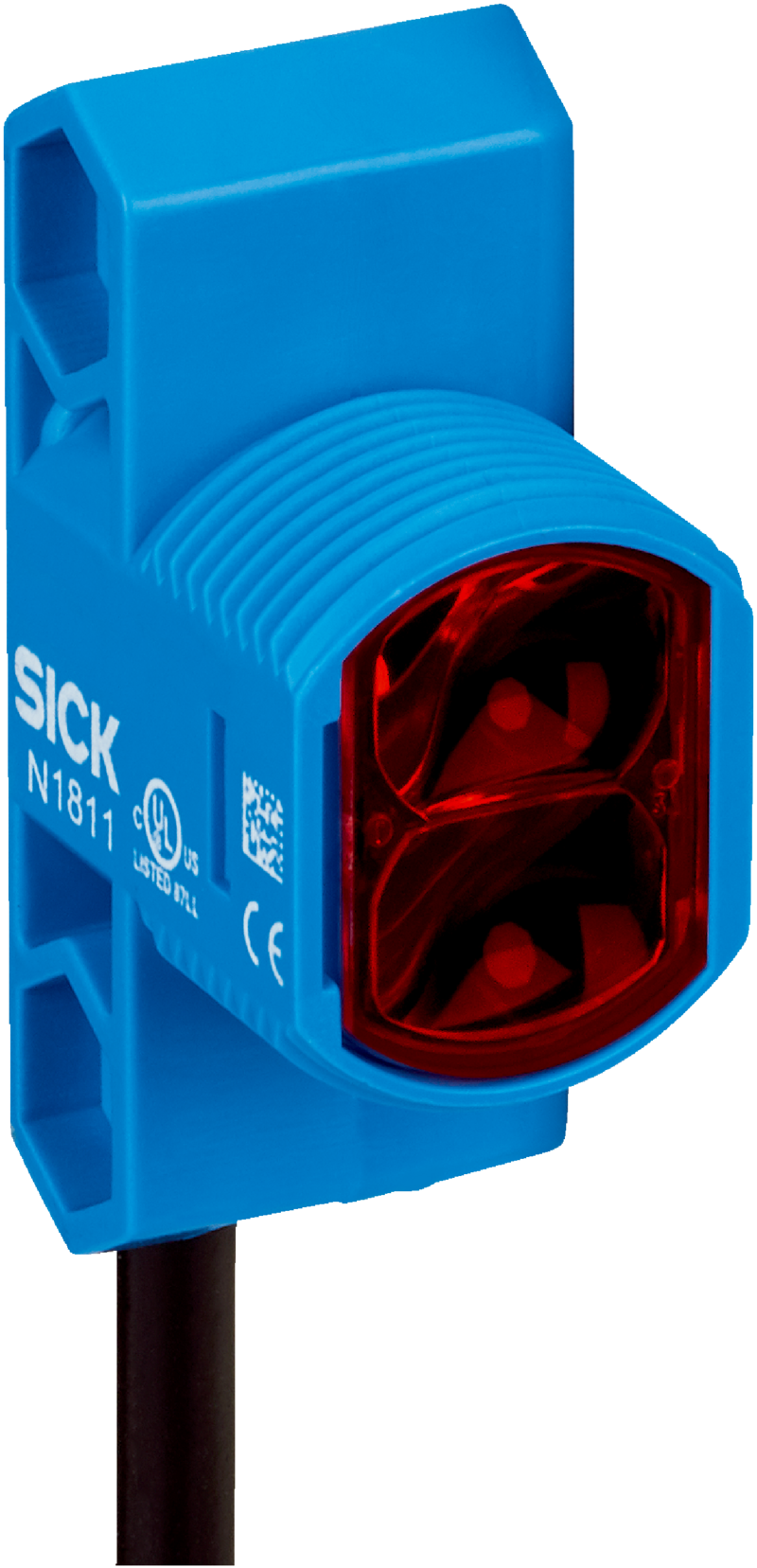 Fotoprzekaźnik refleksyjny SICK, zasięg do 7,8 m, nadajnik PinPoint, wyjście PNP, załączany przez ciemność, przewód M8 1 m, IP67, filtr polaryzacyjny.