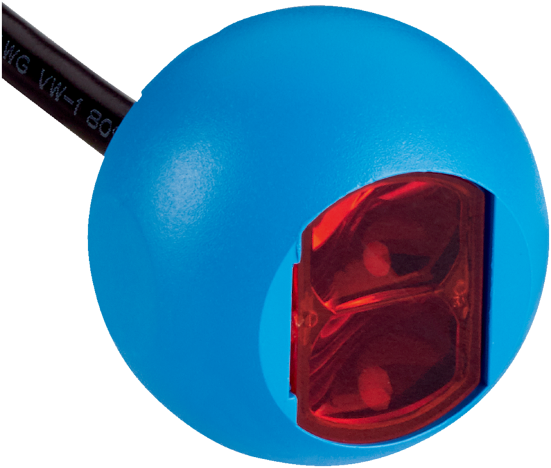 Fotoprzekaźnik refleksyjny SICK, zasięg do 5 m, LED czerwony, dwa wyjścia PNP główne i wtórne, kula 24 mm, kabel 2 m, IP67.