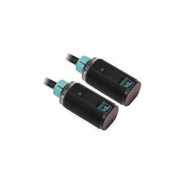 | Thru-beam sensor, M18 threaded housing design, plastic housing, front optical face, 20 m detection range, red light, light on, DC version, NPN output, fixed cable with M12 plug |