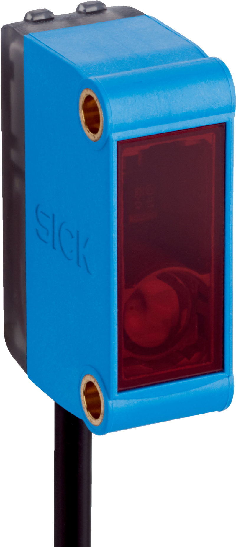 Fotoprzekaźnik barierowy SICK, zasięg do 15 m, nadajnik PinPoint, przewód 3-żyłowy, widzialne światło czerwone, obudowa ABS/PC, IP67, czas odpowiedzi <500 µs, brak regulacji.