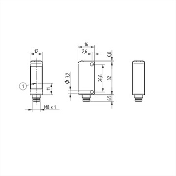 Czujnik optyczny typu bariera firmy Wenglor, zakres=10000 mm, nadajnik, zasilanie 10...30 V DC, IP67/IP68, podłączenie konektor M8-3 pin, materiał korpusu tworzywo