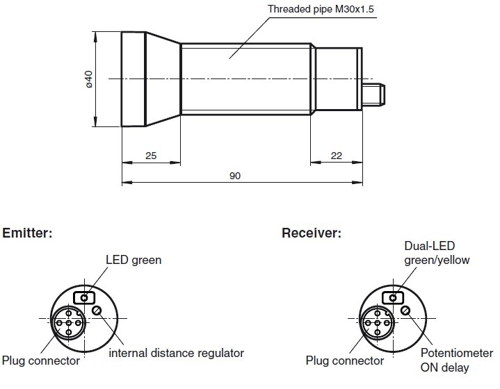 | Zasięg wykrywania | 0 ... 4000 mm, odległość nadajnik-odbiornik 500 mm ... 4000 mm | |