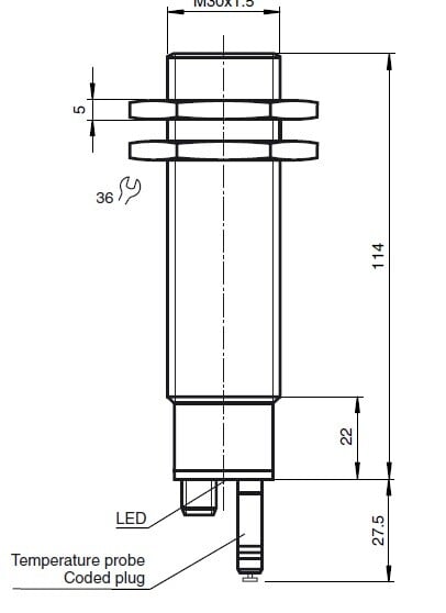| Złącze temperatury / TEACH-IN | Kompensacja temperatury, programowanie zakresu oceny, ustawienie funkcji wyjścia | |