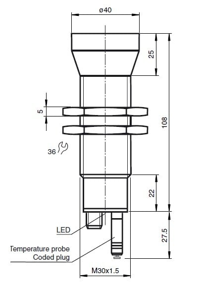 | LED zielony | stałe: Włączanie i miganie: tryb gotowości lub komunikacja IO link | |