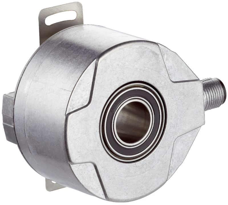 Wieloobrotowy enkoder absolutny SICK, interfejs SSI, programowalny, rozdzielczość 15 bit x 12 bit, otwór przelotowy 10 mm, wtyk M12 8-pinowy, narzędzie lub SOPAS, IP65/IP67, zakres -40...+100°C.
