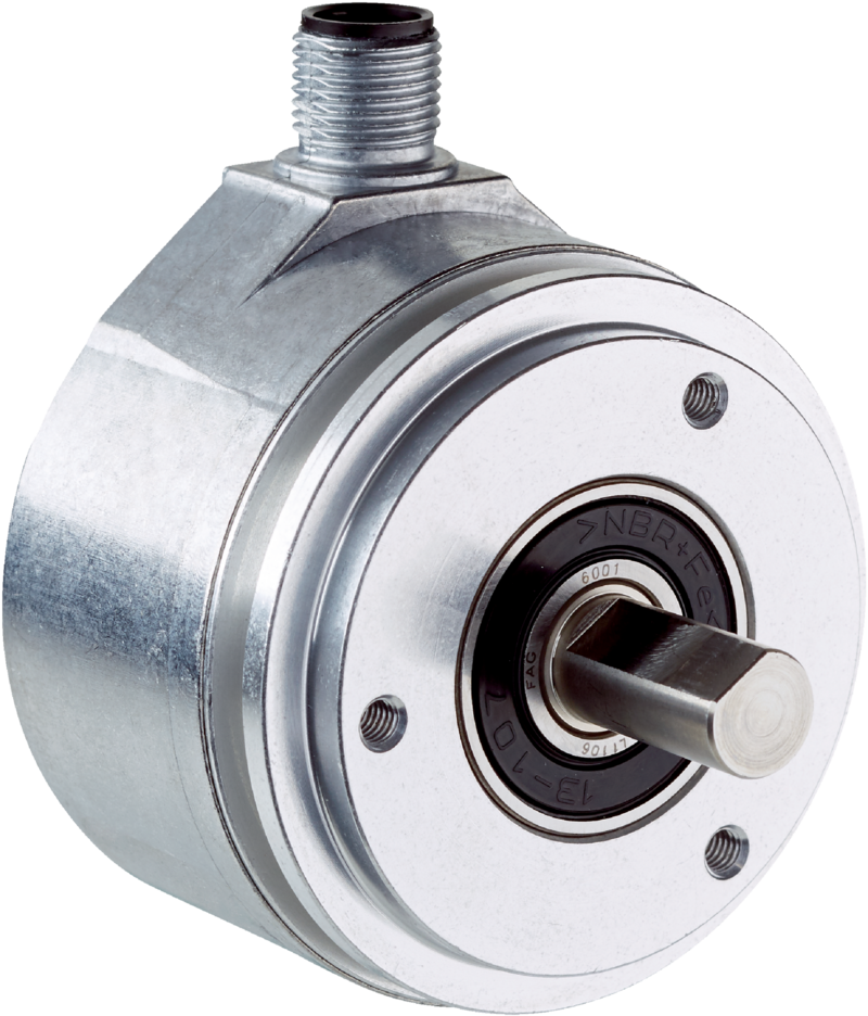 Cecha wyróżniająca | Mocowanie na serwokołnierzu, wałek o średnicy 10 x 19 mm 4,5 ... 32 V, TTL/HTL z możliwością programowania, ustawienie domyślne na HTL Rozdzielczość programowana na maks. 10 000 impulsów, ustawiona domyślnie na 10 impulsów |