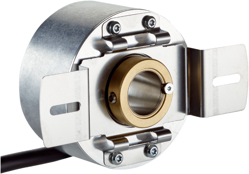 Enkoder inkrementalny SICK, otwór przelotowy 15 mm, 4,5–30 V, TTL/HTL, IP65, 100 imp/obrót, przewód z wtykiem M23, wspornik 2-stronny, temp. pracy -30...+100°C.