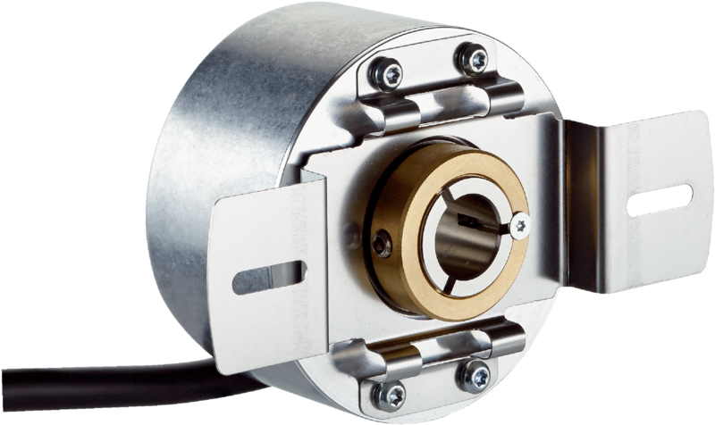 Enkoder inkrementalny SICK, otwór przelotowy 5/8”, TTL/RS-422, zasilanie 4,5–5,5 V, 100 impulsów/obrót, przewód 0,5 m, IP65, wspornik 2-stronny, zakres temp. –20°C do +85°C.