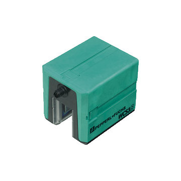 Głowica optyczna odczytu pozycji na szynie kodewej firmy Pepperl+Fuchs, wielkość WCS3, interfejs RS485 + terminator, 187,50 kBaud, zakres temperatury pracy 0 ... 60 ° C, zasilanie 10 - 30 VDC, podłącznie M12-5pin, IP54