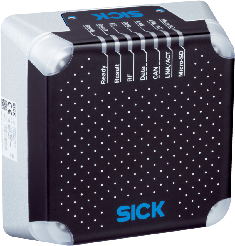 Czytnik RFID z wbudowaną anteną SICK, UHF 860-960 MHz, zasięg odczytu do 2 m, polaryzacja dookólna, moc wyjściowa 0,32 W EIRP, stopień ochrony IP67, wejścia/wyjścia dwustanowe 2/2, obsługa PROFINET, Ethernet, CANopen.