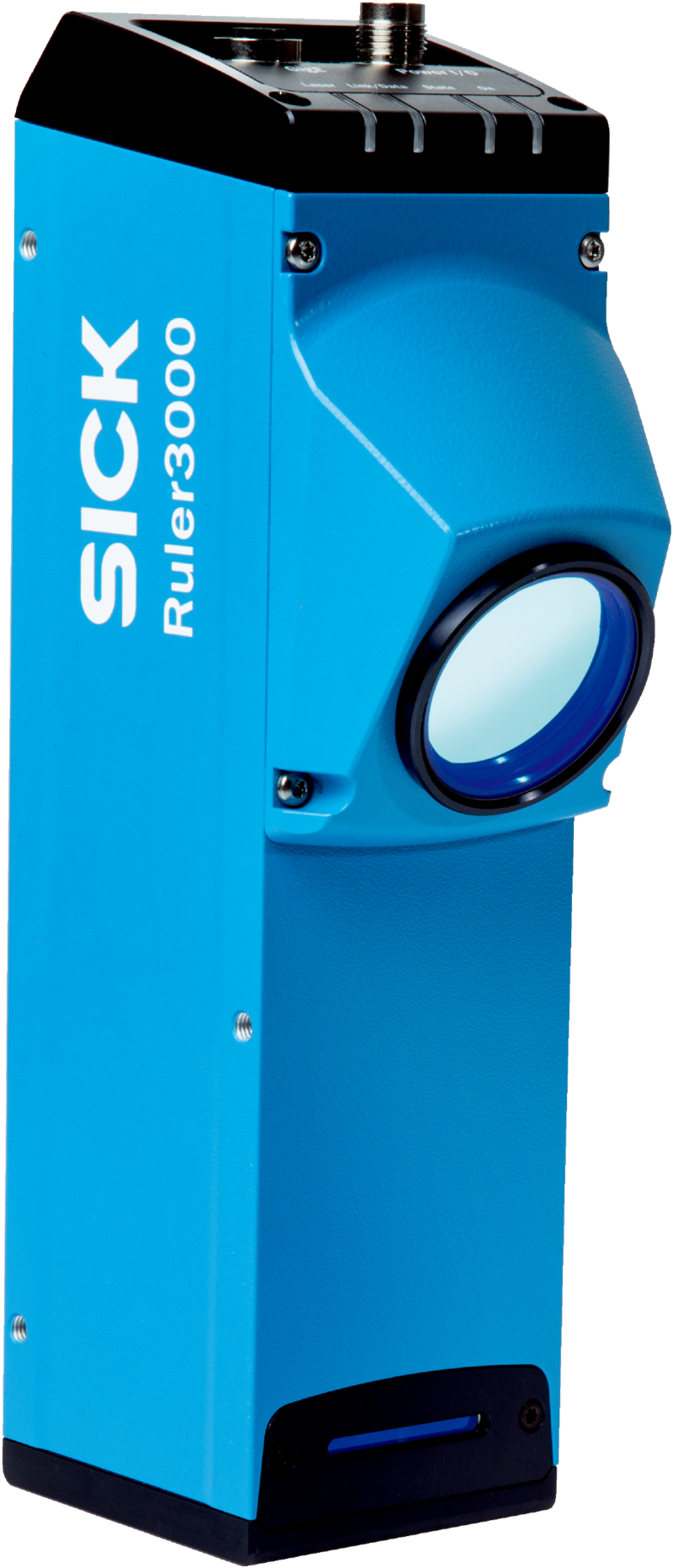Czujnik 3D SICK Ruler3000, CMOS, laser czerwony 660 nm, klasa 2, zakres pracy 245,5–370,5 mm, rozdzielczość Z 8–16 µm, IP65/IP67, pole widzenia 190x50 mm.