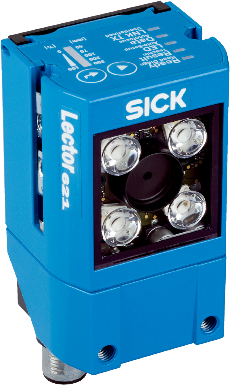 Wizyjny czytnik kodów SICK, 1,3 Mpixel, autofokus, obiektyw 9,6 mm, czerwony/niebieski LED, zakres pracy 70–1.500 mm, Ethernet/PROFINET/EtherCAT, IP65, microSD.